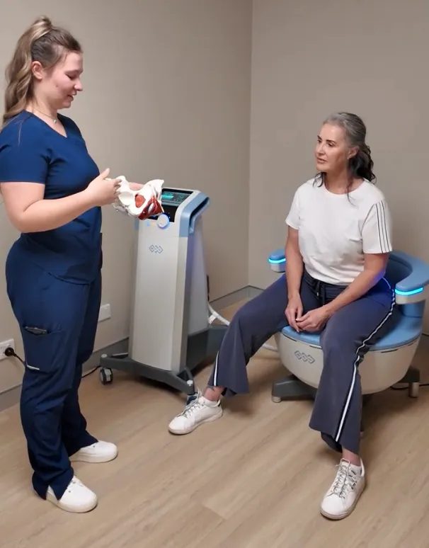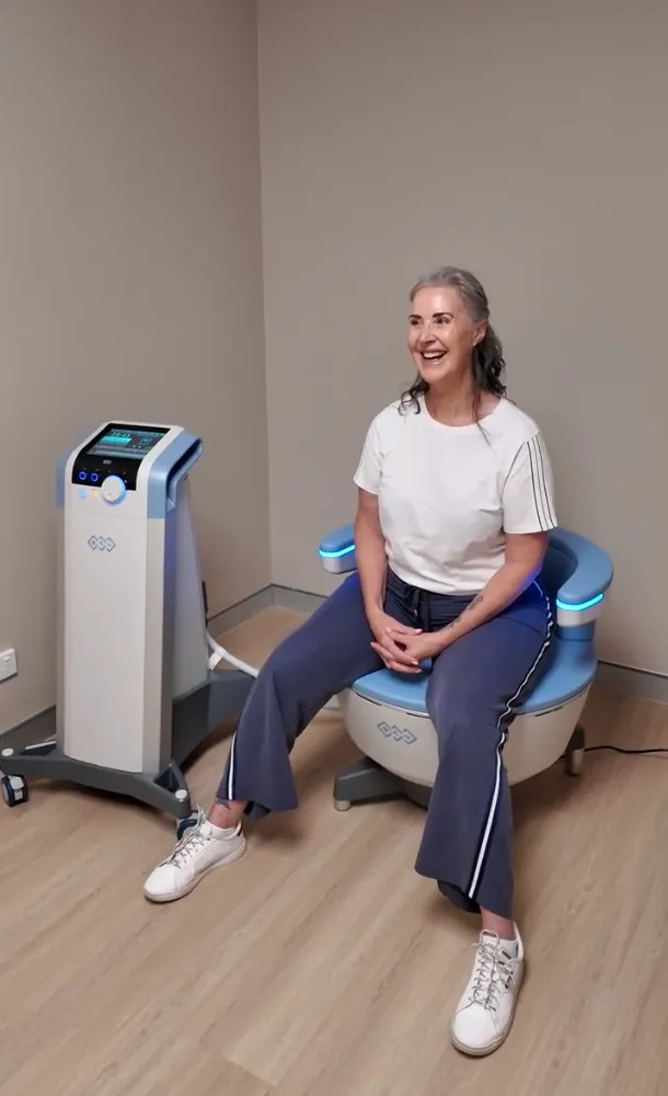 Lay back while Emsella does the deep work! You're in and out within the hour, fully clothed, zero pressure.